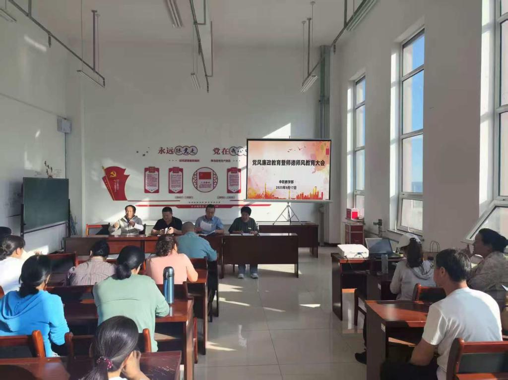 9月17日,中职教学部召开师德师风教育暨党风廉政教育警示大会,全体教师参加。